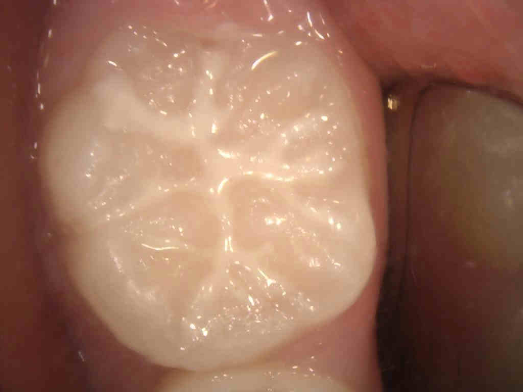 乳歯や永久歯の噛み合わせの面にある溝をプラスチックの材料で埋めて、虫歯になりやすい深い溝伸の部分を塞ぐ処置です。